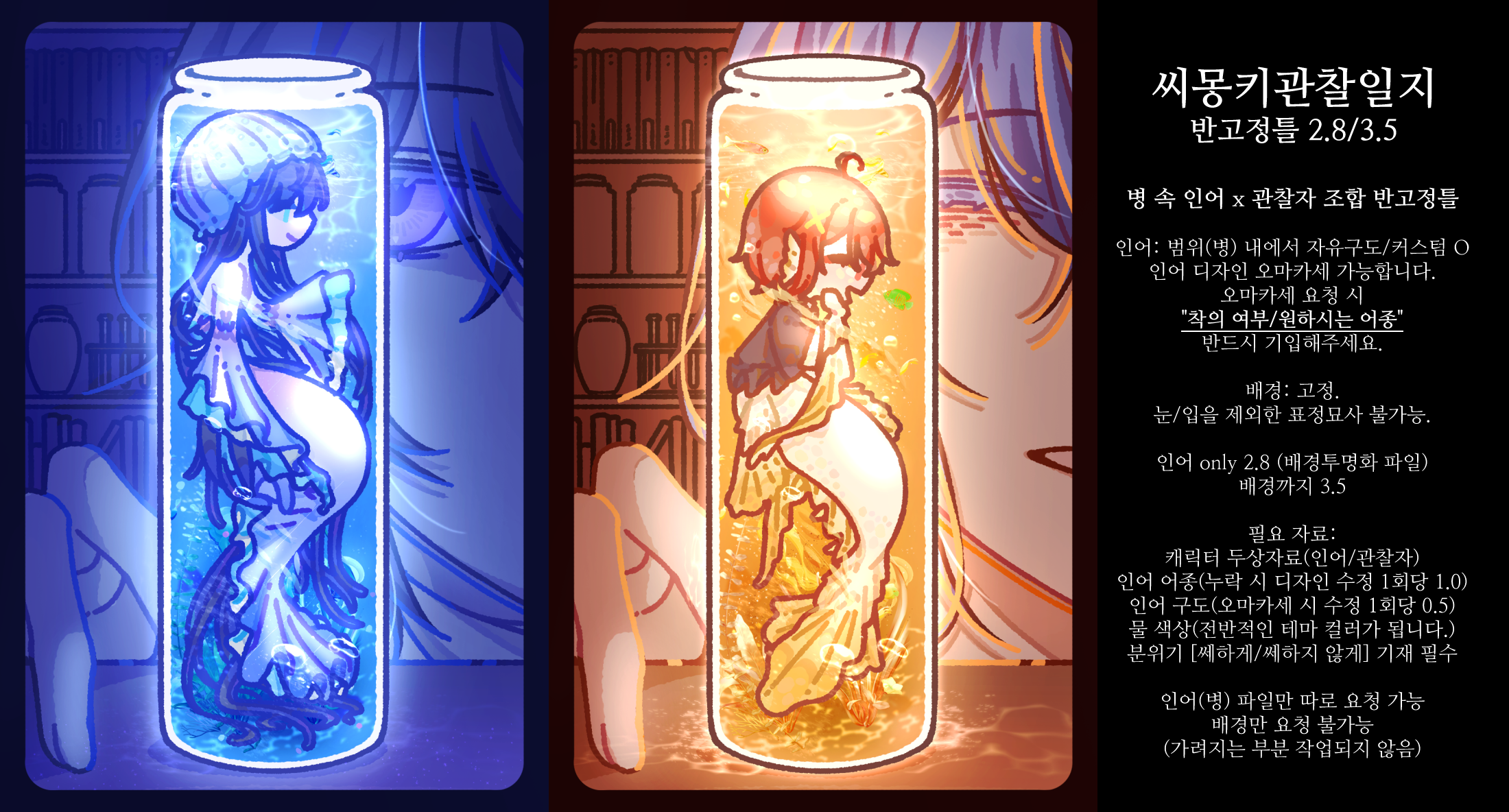 ** 대부분의 경우 1차 자캐 1인 or 2~5인 페어 의뢰 예정입니다. 분야 무관 다인/다량 작업 가능하신 분 따로 기재 부탁드립니다.