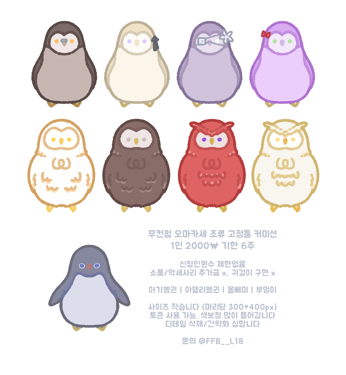 5. 따로 인포 없는 타입이어도 트위터 계정 갤러리에서 보시고 비슷한 작업물 요청해주셔도 괜찮습니다. 저를 위한 타입을 만들어주세요 요청도 OK (이쪽이 퀄리티 더 잘 뽑힐 때가 왕왕 있습니다...)