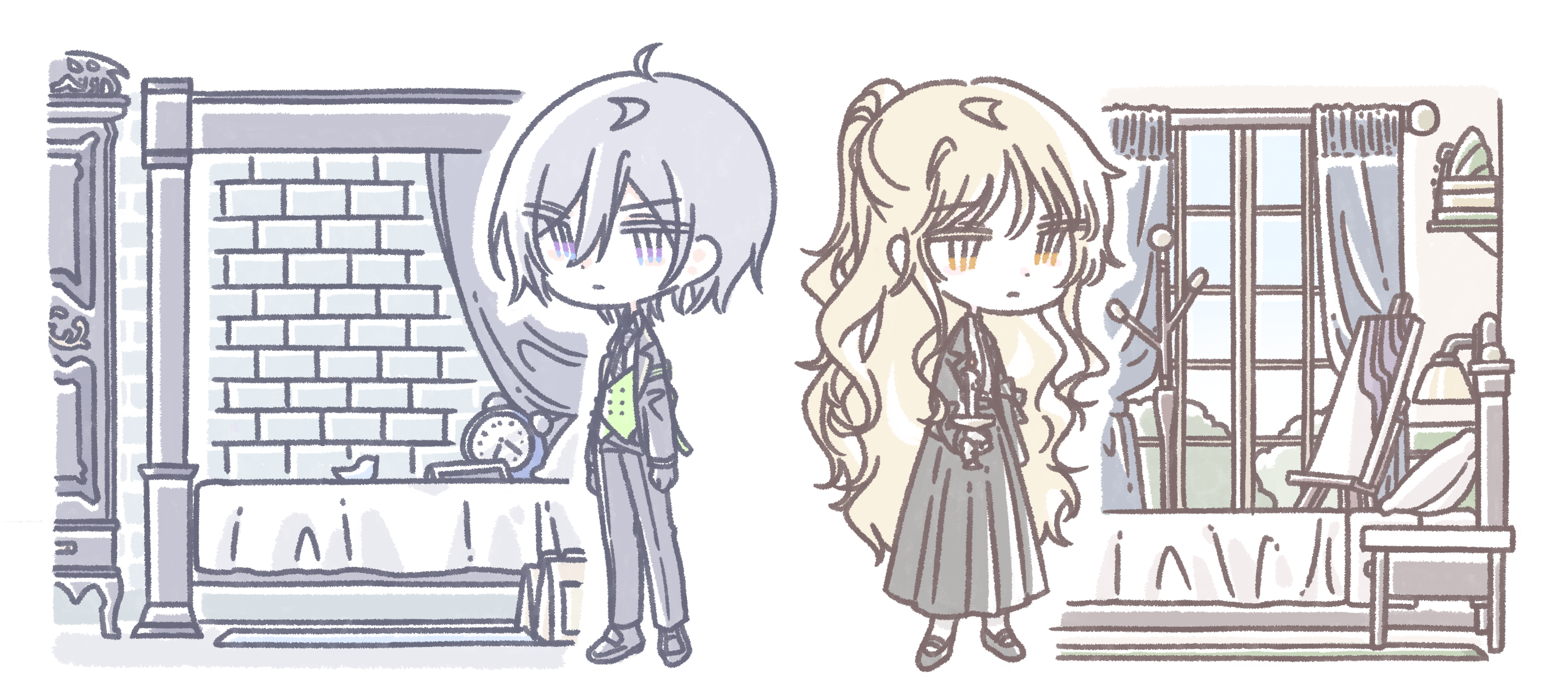 💘 캐릭터 자료만 보고 마음대로 작업합니다. 포즈 지정 OK, 배경은 평면으로만 작업합니다. 너무 복잡한 의상 디테일 못 살립니다. 인물 특이동공 반영 못합니다. 배경 아주 세밀하게는 묘사하지 않습니다.