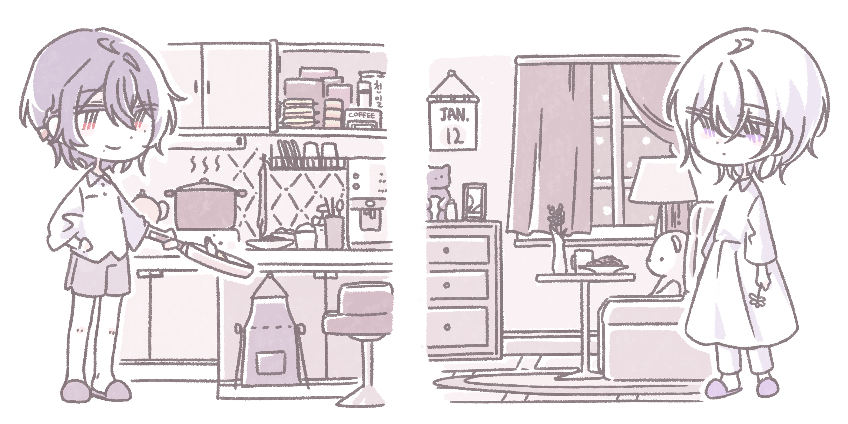 💘 직선자 툴 or 별도 소재 사용 없이 손으로 그리므로 선의 수평이 맞지 않을 수 있습니다. 러프 스케치와 수정 과정 없이 바로 그려서 얼굴형이 가끔 퍼집니다... 배경의 복잡도에 따라 퀄리티에 차이가 있어 보일 수 있습니다. 원톤으로 채색하기 때문에 원본 색감 많이 죽습니다. 색감에 예민하신 분의 신청은 권하지 않습니다.